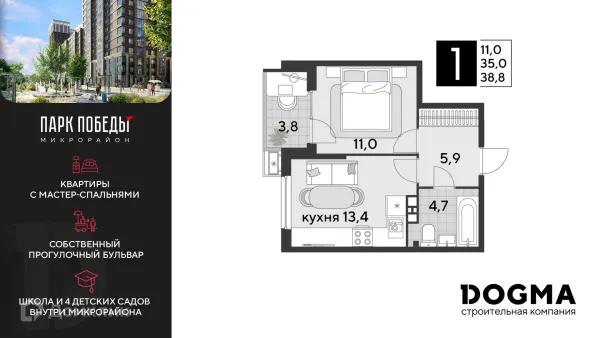 1 комн. квартира в Краснодаре в ипотеку от 51 422 руб/месяц