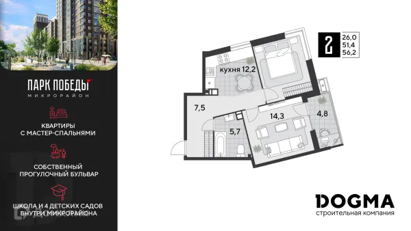 2 комн. квартира в Краснодаре в ипотеку от 57 062 руб/месяц