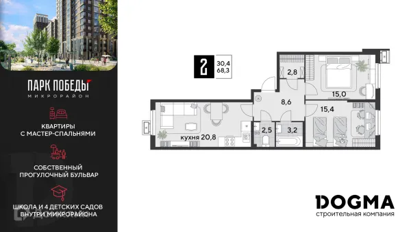 2 комн. квартира в Краснодаре в ипотеку от 56 517 руб/месяц