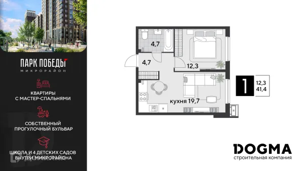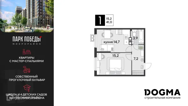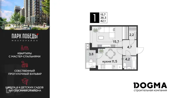 1 комн. квартира в Краснодаре в ипотеку от 42 684 руб/месяц