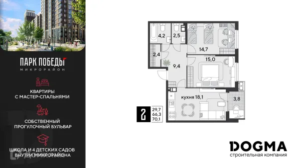 2 комн. квартира в Краснодаре в ипотеку от 58 528 руб/месяц