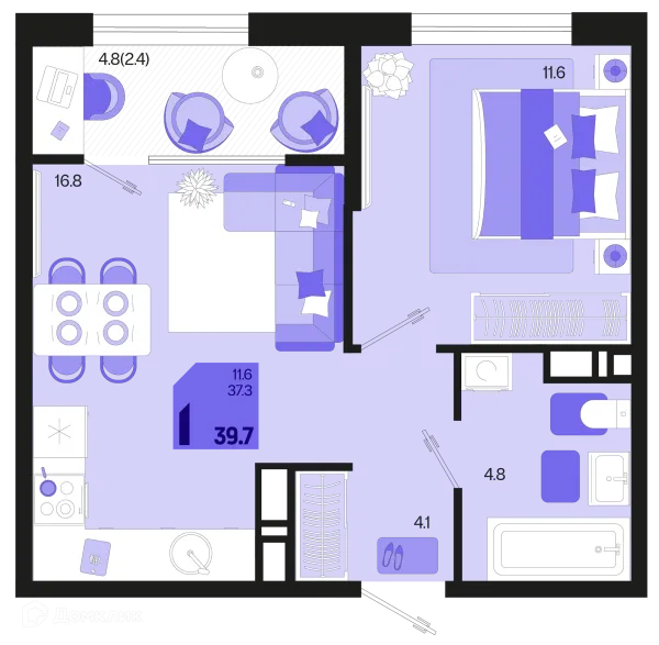 1 комн. квартира в Краснодаре в ипотеку от 41 974 руб/месяц