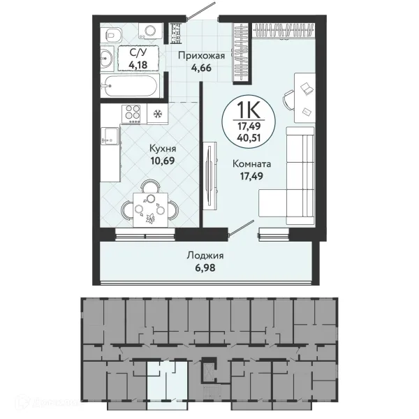 1 комн. квартира в Новосибирске в ипотеку от 51 127 руб/месяц
