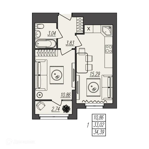 1 комн. квартира в Волгограде в ипотеку от 34 282 руб/месяц