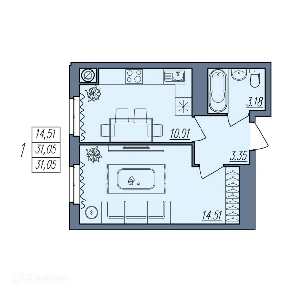 1 комн. квартира в Волгограде в ипотеку от 45 318 руб/месяц