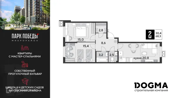 2 комн. квартира в Краснодаре в ипотеку от 68 325 руб/месяц