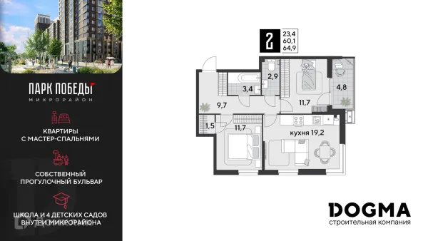 2 комн. квартира в Краснодаре в ипотеку от 62 019 руб/месяц