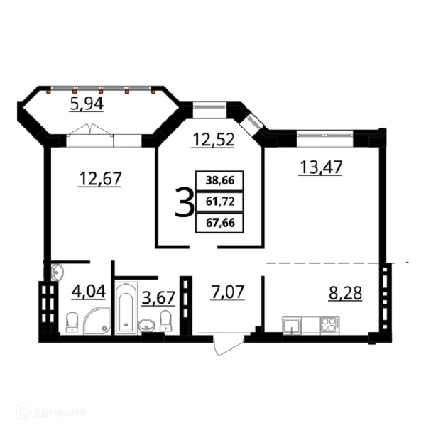 3 комн. квартира в Волгограде в ипотеку от 61 237 руб/месяц
