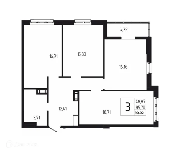 3 комн. квартира в Волгограде в ипотеку от 71 289 руб/месяц